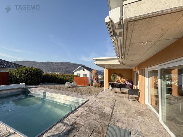 Willkommen in einem aussergewöhnlichen Zuhause. An einer gepflegten und repräsentativen Lage vereint diese Liegenschaft Weitblick mit einem harmonischen Lebensgefühl. Geniessen Sie die Ruhe und den Charme der Umgebung. 2014 wurde die gesamte Liegenschaft mit viel Liebe zu modernen Details komplett kernsaniert (Neubau), das Haus um 1/3 zusätzlich erweitert (Neubau) sowie die gesamte Gartenanlage inkl. Chromstahl-Pool neu angelegt.