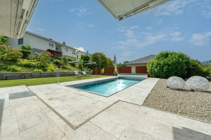 Willkommen in einem aussergewöhnlichen Zuhause. An einer gepflegten und repräsentativen Lage vereint diese Liegenschaft Weitblick mit einem harmonischen Lebensgefühl. Geniessen Sie die Ruhe und den Charme der Umgebung. 2014 wurde die gesamte Liegenschaft mit viel Liebe zu modernen Details komplett kernsaniert sowie die gesamte Gartenanlage inkl. Chromstahl-Pool neu angelegt.