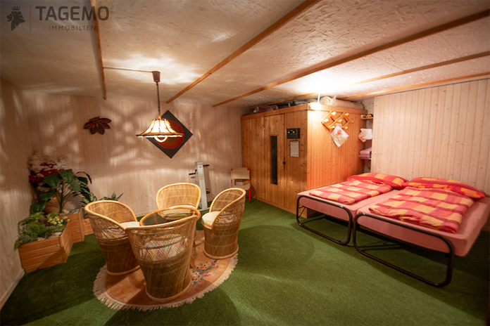 Als eines der wenigen Häuser der Überbauung steht die Liegenschaft nicht auf der Tiefgarage und verfügt dadurch über ein vollwertiges Untergeschoss mit zusätzlichem Raumangebot. Mit viel Herzblut wurden hier ein Saunaraum mit Gästezimmer sowie ein separater Hobbyraum geschaffen.